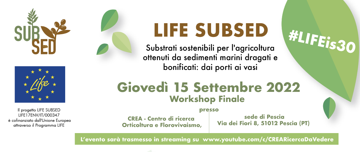 LIFE SUBSED: UTILIZZO DI SUBSTRATI A BASE DI SEDIMENTI MARINI FITORIMEDIATI PER PRODUZIONI VIVAISTICHE IN COLTURE FUORISUOLO
